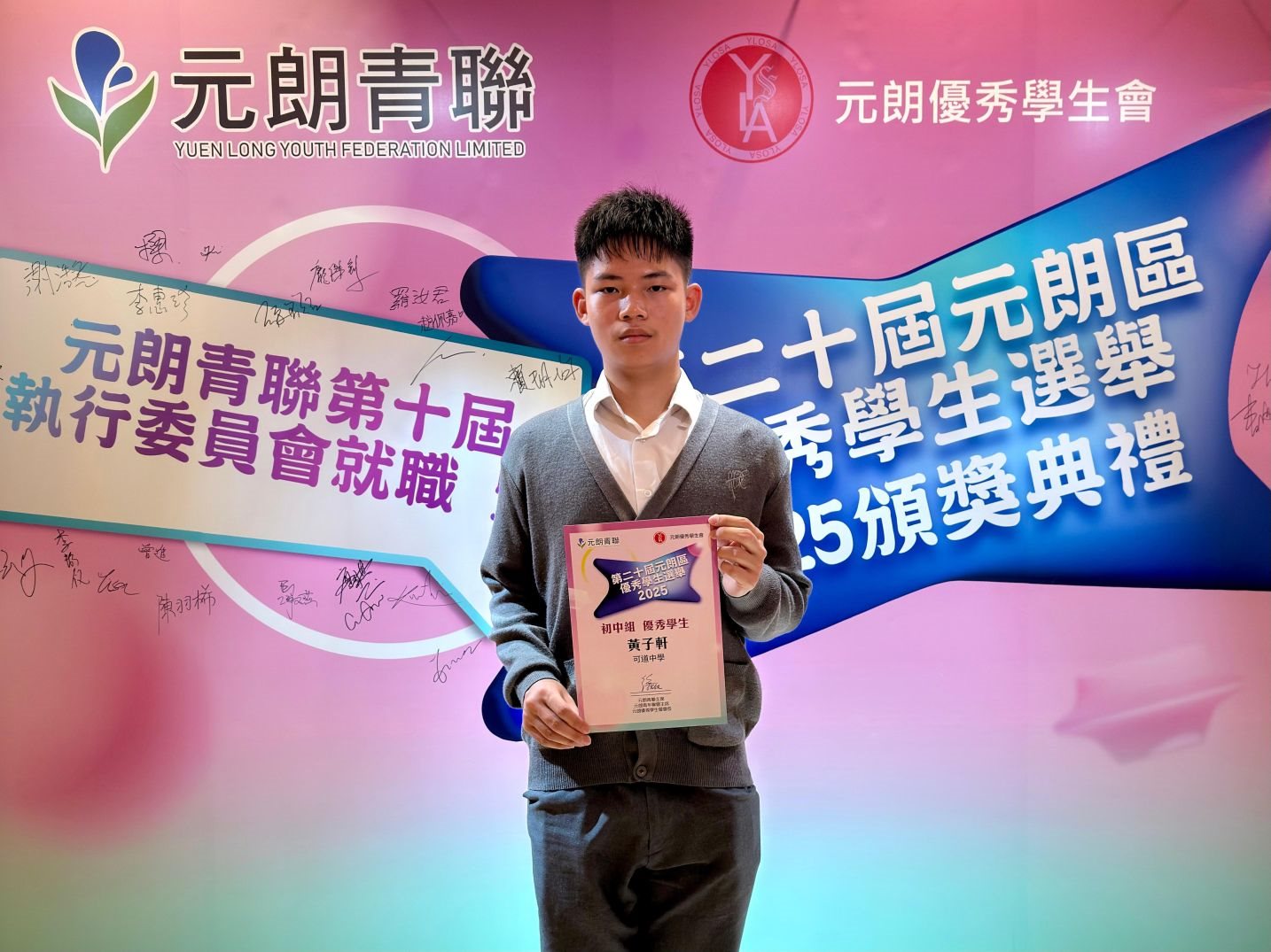 本校在第二十屆元朗區優秀學生選舉(2025)中取得驕人成績,4D 黃子軒同學脫穎而出,榮獲元朗區優秀學生殊榮。