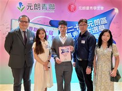 經過首輪評審、次輪評審及決賽的激烈競爭,4D 黃子軒同學表現出色,在初中組脫穎而出,獲評為元朗區優秀學生。