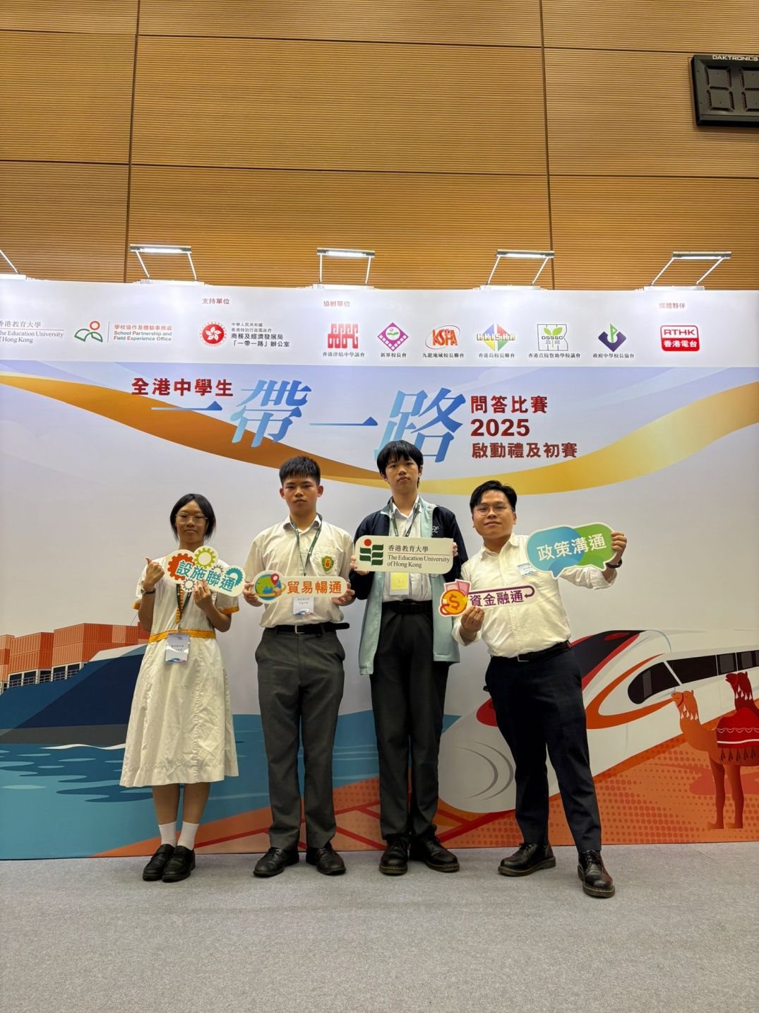 本校三位同學獲邀參加「全港中學生一帶一路問答比賽2025」。是次比賽由香港教育大學學校協作及體驗事務處主辦,並獲得商務及經濟發展局「一帶一路」辦公室支持。比賽鼓勵中學生放眼世界,深入了解「一帶一路」相關重要政策及協議、以及各地經濟、地理、文化、歷史,掌握未來的發展機遇。