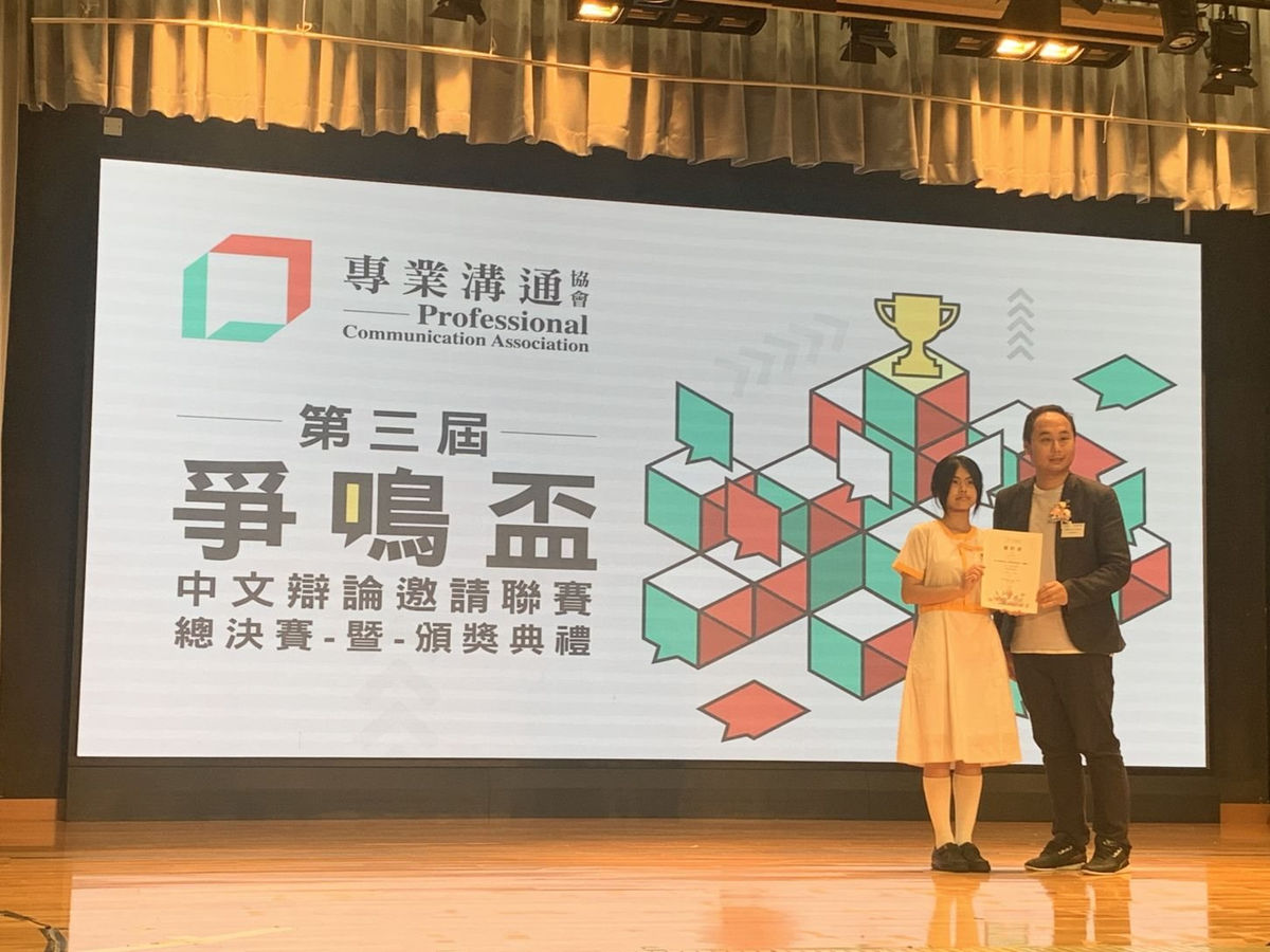 本校一向重視培養學生思辯能力,於近日參加了由香港專業溝通協會舉辦的第三屆爭鳴盃中文辯論邀請聯賽。同學們在比賽中表現出色,其中6D班的羅苑樺同學及4C班的歐曉靜同學更在分組賽中脫穎而出,榮獲最佳辯論員獎項,為校爭光。