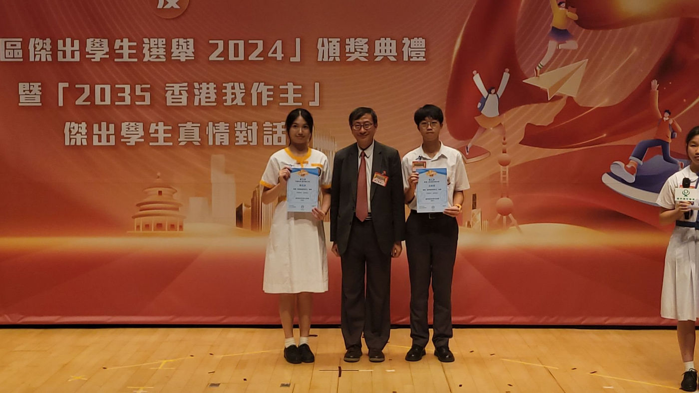 今年參加傑出學生選舉的同學來自190 間學校,人數超過1400名!經過新界九區初選的層層選拔,最終產生46名優秀學生,進入「新界區傑出學生選舉」總決賽。再經過小組面試、個人面試、筆試、短片比賽數個環節!鄭同學獲得两個獎項,可謂出類拔萃。