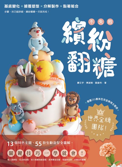 翻糖裝飾基礎入門書首選 從自製翻糖、染色到工具介紹一應俱全,所有提升造型質感的關鍵都在這裡!餅乾、磅蛋糕、海綿杯子蛋糕等基底變化食譜,材料、作法都十分簡單, 世界金牌團隊教你運用切模、披覆、染色等方法,掌握關鍵技巧,照著做不失敗,一點都不困難,初學者也能輕鬆變化出各式生動的繽紛翻糖,好吃又好看。讓你在特別的日子,動手製作繽紛翻糖,送給親友與自己滿滿地心意與祝福,為美好的此刻留下難忘的回憶!