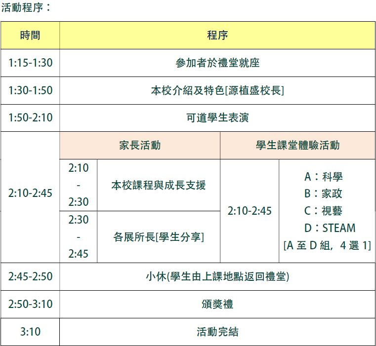 地點:元朗洪水橋洪順路11號可道中學二樓禮堂