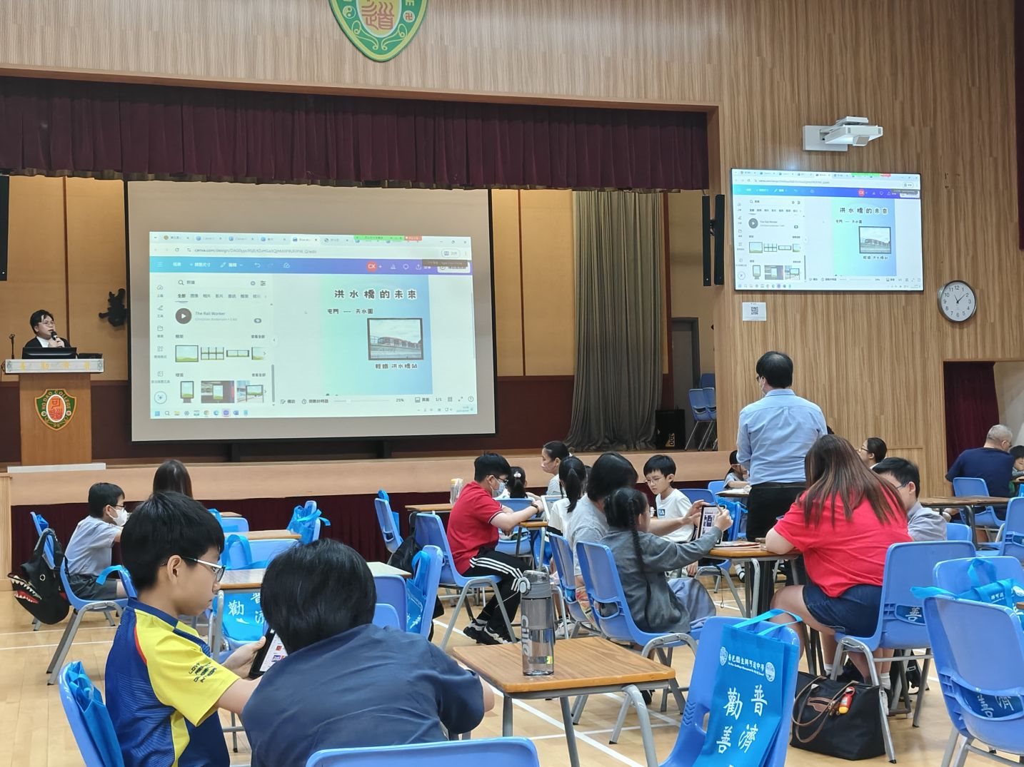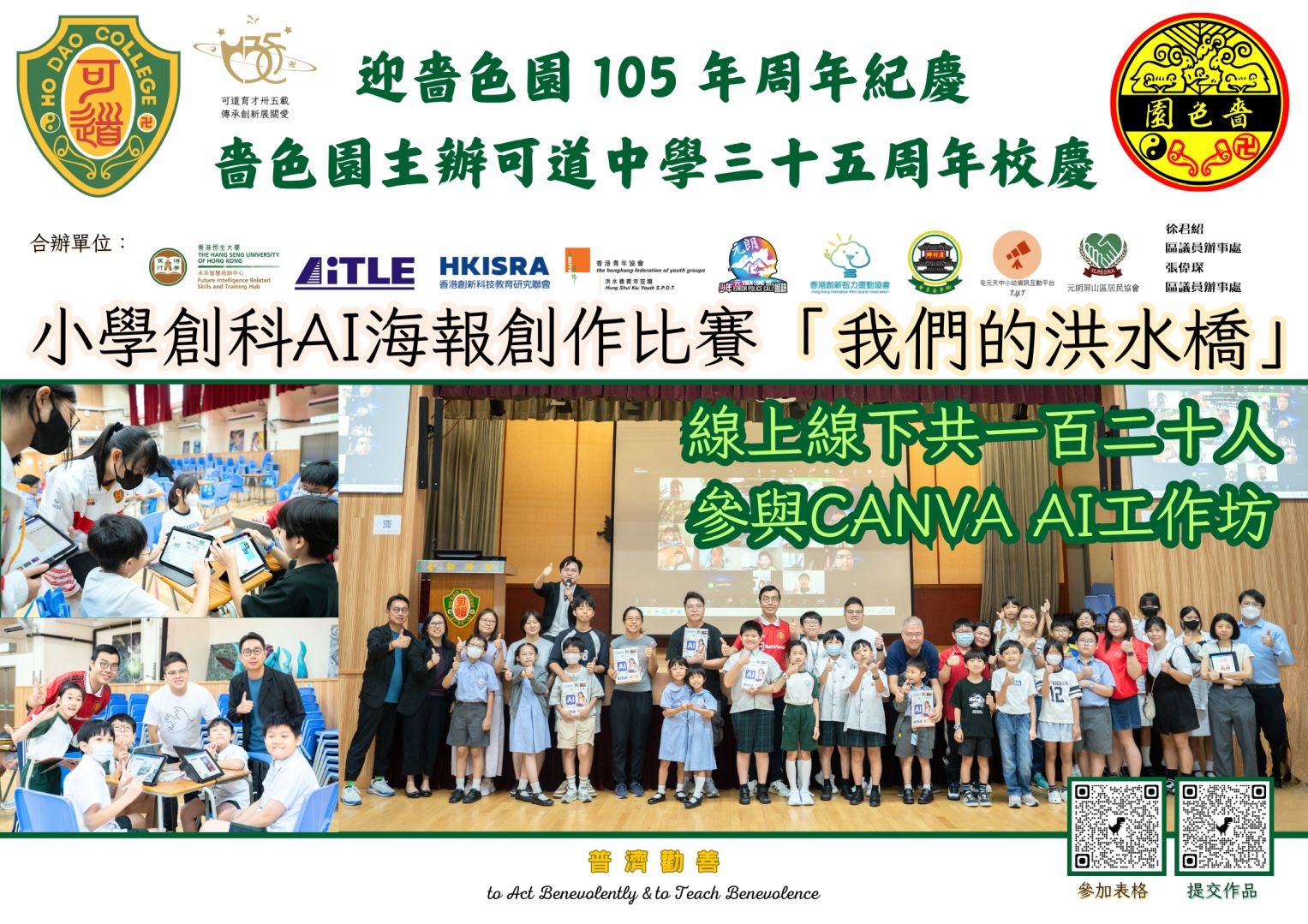 10月4日本校舉辦了「小學創科AI海報創作比賽——『我們的洪水橋』」的工作坊!當日共有超過 120位 來自元朗、屯門及其他地區的師生及家長,分別透過 實體及線上形式 一同參與,場面熱鬧,創意滿載! 工作坊內容豐富,包括: ✅ 洪水橋的歷史與發展簡介 ✅ 生成式AI中文寫作基礎知識 ✅ Canva 軟件AI應用實踐教學 同學們不僅學到了如何運用AI工具創作海報,更對洪水橋的過去與未來有了更深的認識。我們特別感謝所有參與的老師、家長和同學,你們的投入與創意,正是推動社區創科教育的重要力量!