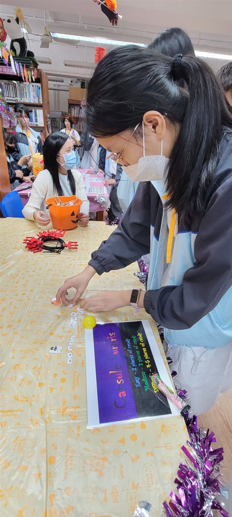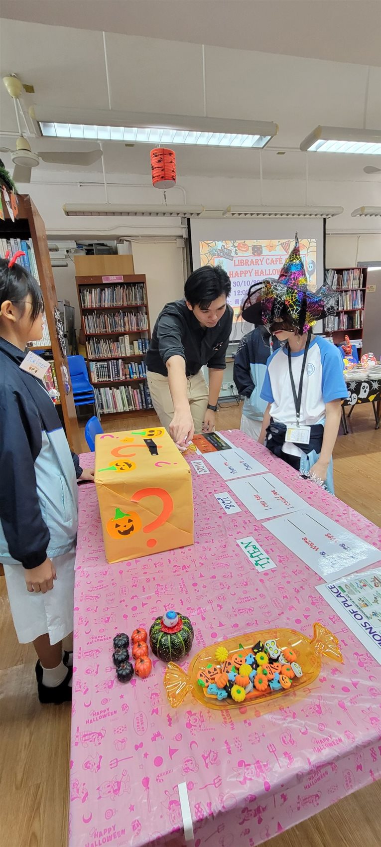 Library Café: Happy Halloween 在10月30日及31日,圖書館聯同英文科合辦 **Library Café: Happy Halloween**。透過一系列攤位活動,同學以輕鬆有趣的方式學習有關萬聖節的英文詞彙及文化知識。活動設計充滿趣味性,同學們積極參與,既玩得投入,也學得開心,充分體驗了寓學習於娛樂的樂趣。活動圓滿結束,為同學帶來了一個難忘的萬聖節學習體驗!