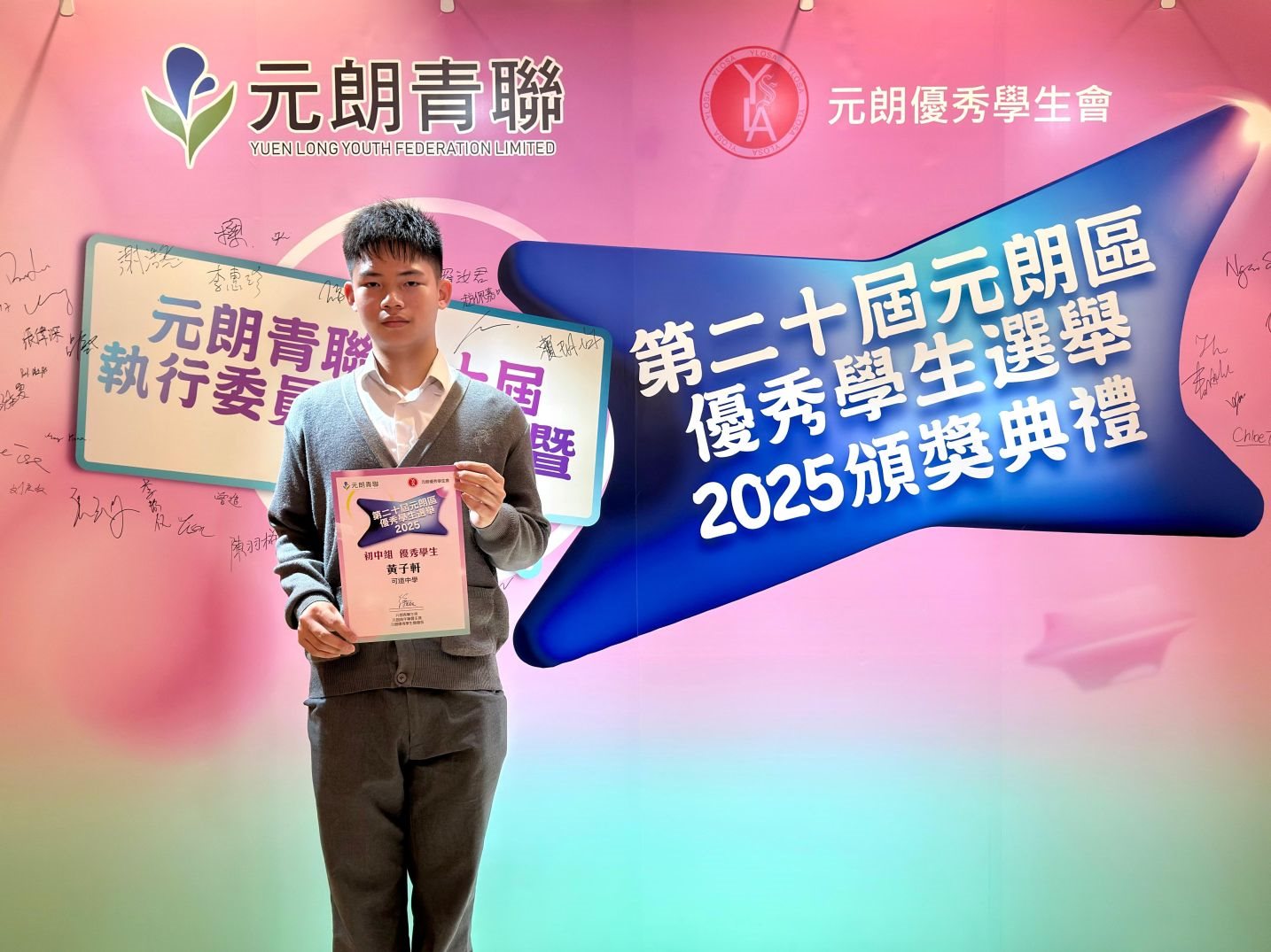本校在第二十屆元朗區優秀學生選舉(2025)中取得驕人成績,4D 黃子軒同學脫穎而出,榮獲元朗區優秀學生殊榮。