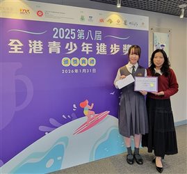 范同學在過去一年積極參與各類型的義工服務,為社會作出貢獻,展現出色的表現。在眾多參賽者中脫穎而出,從過千名參賽者中獲選為中學組「全港青少年進步獎」得主。這項榮譽不僅肯定了范同學在服務社會及個人進步方面的努力,更彰顯了他積極向上的精神,成為同學們學習的典範!