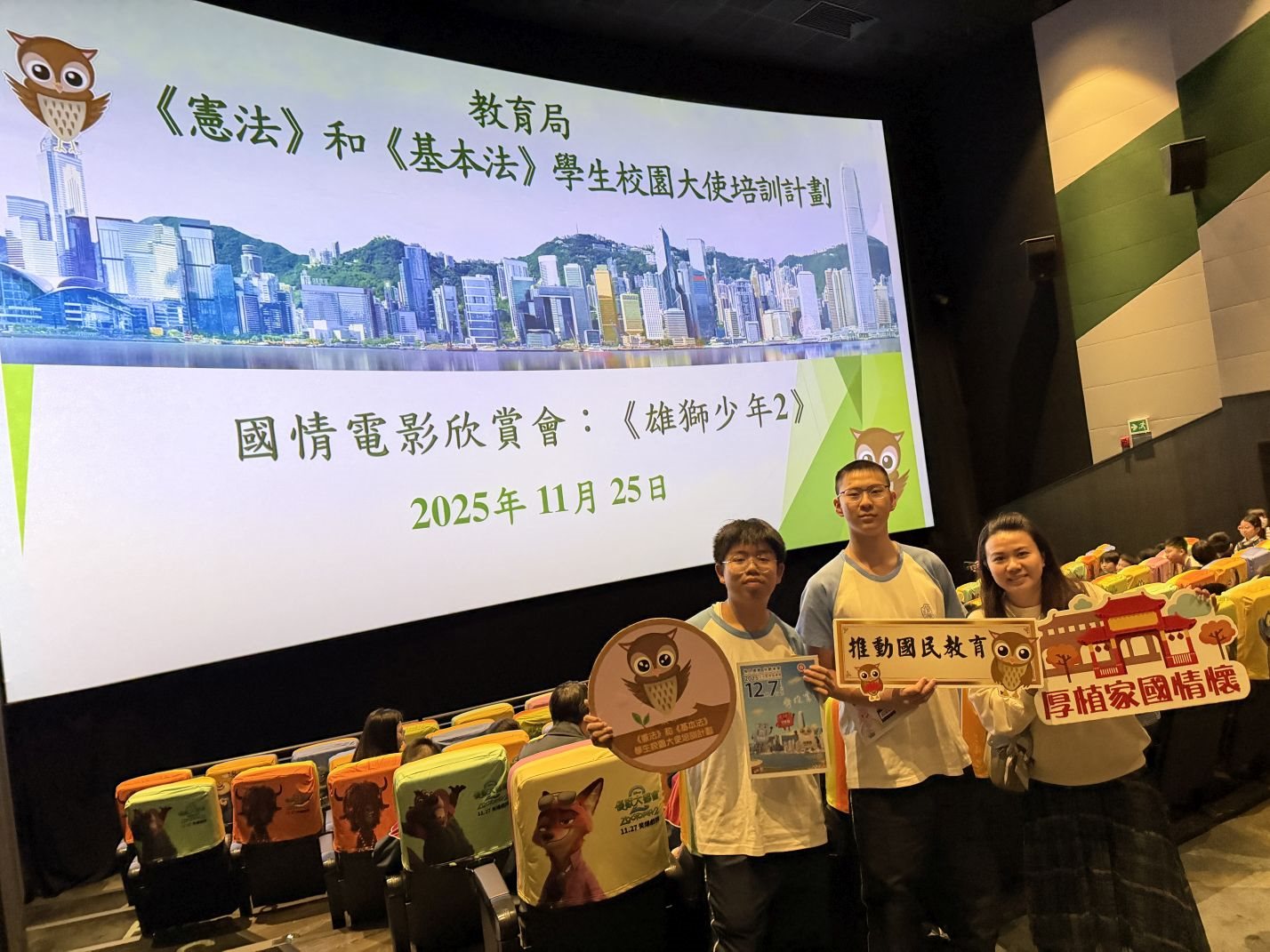 【國情電影欣賞會 — 《雄獅少年2》】 為加強學生的國民身份認同及建立正確價值觀,本校參與教育局《憲法》和《基本法》學生校園大使培訓計劃,舉行了國情電影欣賞會:《雄獅少年2》。舞獅活動是香港歷史悠久的傳統文化,也是非物質文化遺產清單上的重要項目。 透過欣賞電影,同學們不僅感受到傳統舞獅文化和中國武術的精神與價值,更學習到面對困難時自強不息的精神。此外,本校國民大使積極於欣賞會上分享心得,鼓勵同學奮發力行,勇敢迎接挑戰。相信這次活動讓學生深刻體會中國文化的魅力,同時激發他們對傳統文化的認同與熱愛。